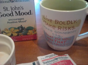 And now I’m at the point that I’m too lazy to make a pot myself. I’m headed into work at noon. I’ll have some then. For now, I’ll just drink tea. I know nothing about tea. I don’t understand passionate tea-drinkers. The culture surrounding coffee makes sense to me – it has heavy ties with creativity. In my experience, the right cup of coffee can fuel an incredible session of creation. But tea? It has these supposed herbal powers that can do magical things for your body. Having done virtually no research of this, I’ll say this is all the the placebo effect. If you think that cup of tea is going to regulate your digestive system, it will. If you think that cup of tea is going to calm your nerves, it will. I’m probably too cynical to drink tea, which is especially funny when I’m forced to admit that I bought a box of St John’s tea the first day I was without Bill.