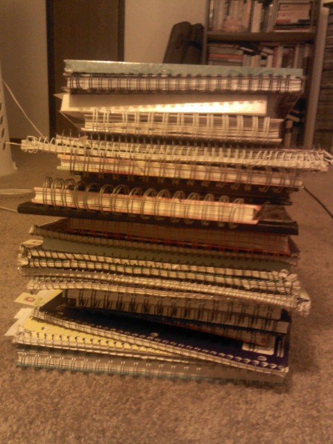 This is my stack of journals/diaries from 1998-2006. My goal is to make this as tall as myself by the time I’m 40.