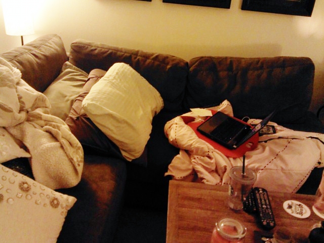 Also, I’m on nyquil. Well, not nyquil. Generic nyquil that I took from my dad. I’m not drinking it recreationally, you prudes. I’m sick. I’m on my couch in sweatpants with Netflix (Mike Birbiglia’s special) playing in the background.