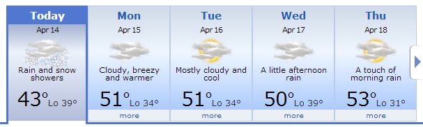 I think really, I’m just feeling sorry for myself while the weather continues to suck. The forecast should just read SHITTY TILL IT’S NO LONGER SHITTY. But instead, they go through the trouble of describing the shittiness.